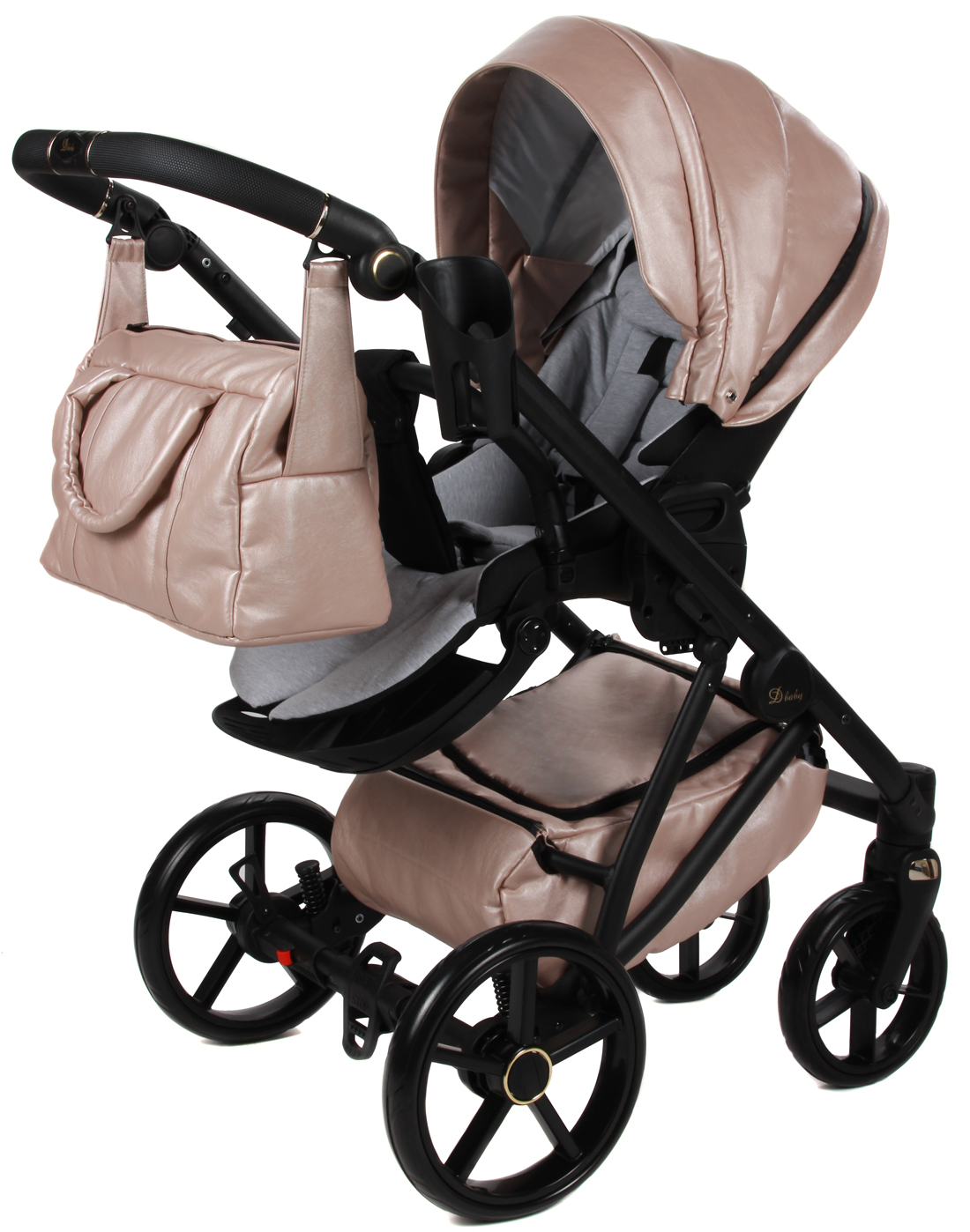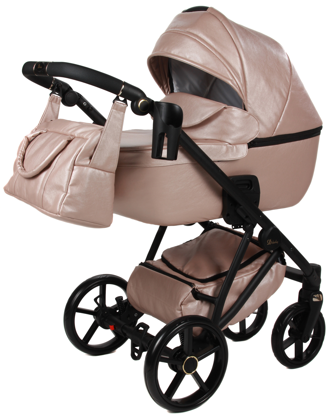 Tapicerka wózka wyprodukowana z wysokojakościowej lakierowanej eko-skóry.