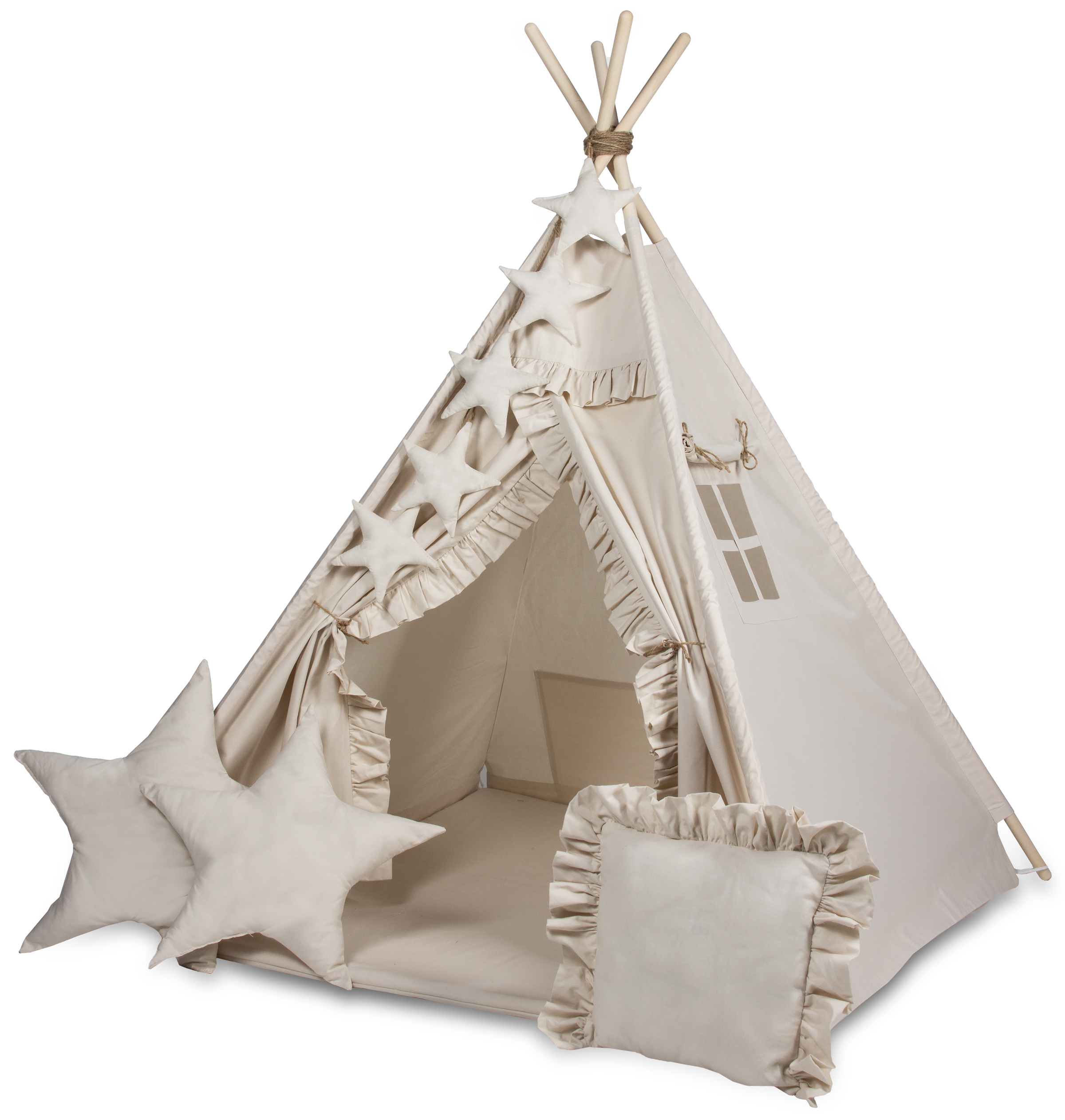 Namiot Tipi, dedykowany jest dzieciom w każdym wieku, zarówno tym najmłodszym jak i starszym. Świetnie wkomponuje się w każde wnętrze, nadając mu przytulny klimat. Latem można rozstawić go w ogrodzie, zapewniając dziecku schronienie przed słońcem.
