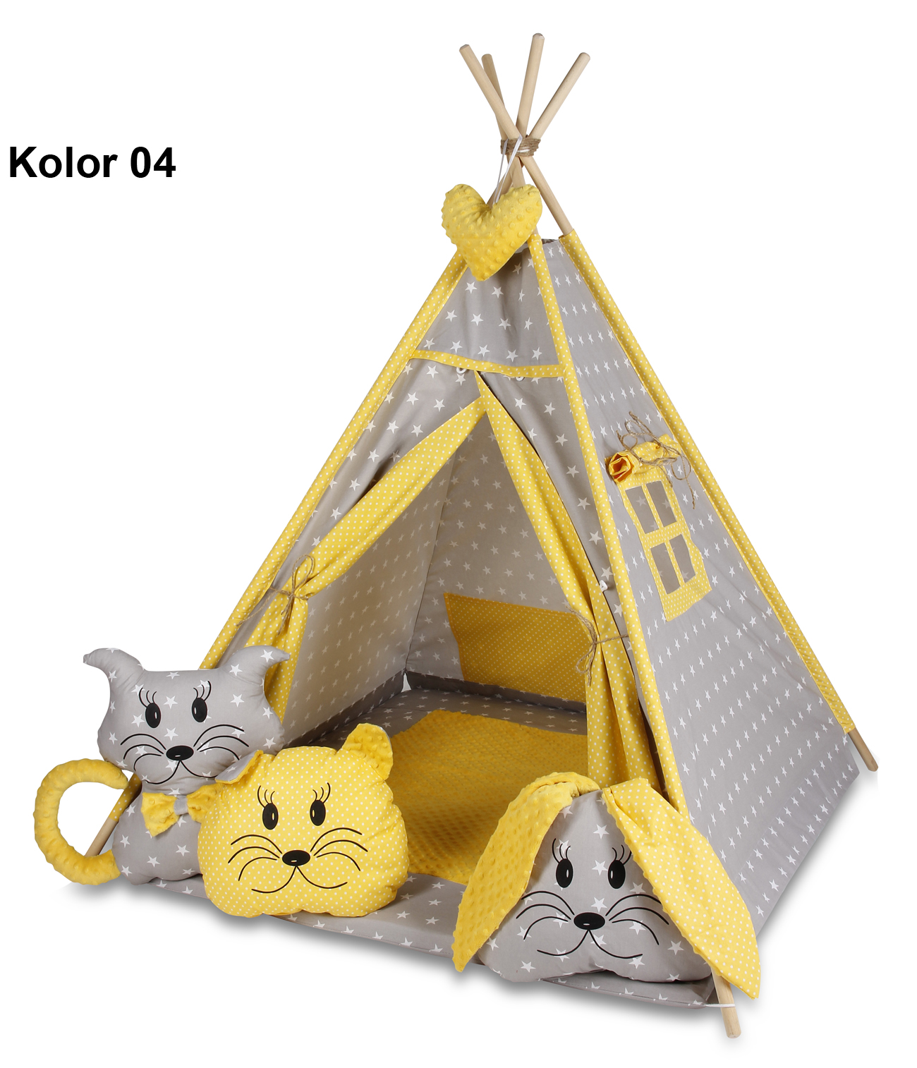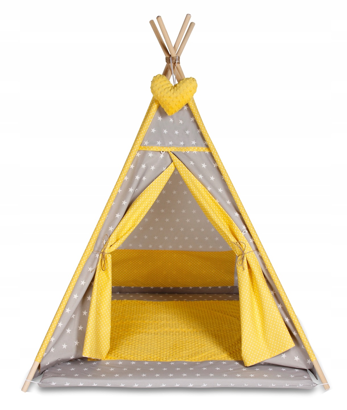 Namiot Tipi, dedykowany jest dzieciom w każdym wieku, zarówno tym najmłodszym jak i starszym. Świetnie wkomponuje się w każde wnętrze, nadając mu przytulny klimat. Latem można rozstawić go w ogrodzie, zapewniając dziecku schronienie przed słońcem.