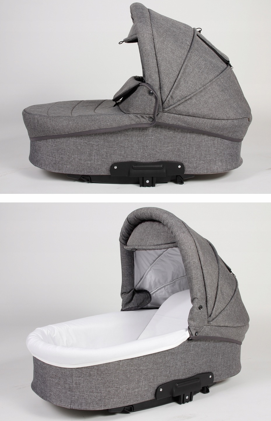 3-stopniowa regulacja podgłówka, wewnątrz gondola obszyta miękką hipoalergiczną bawełną. Gondola posiada wbudowaną kołyskę z możliwością blokady.
