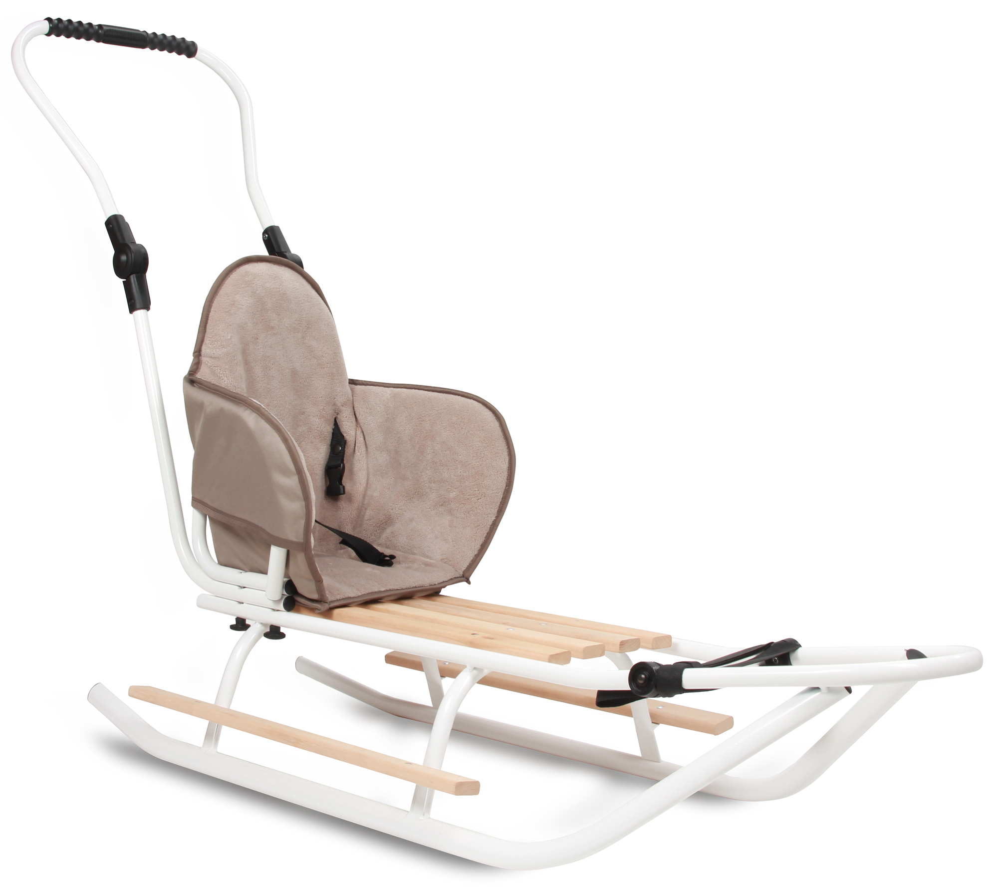 W zestawie znajduje się mięciutki materacyk, który idealnie pasuje do tego modelu sanek. Materacyk wyposażony jest w otwory umożliwiające przeciągnięcie pasów bezpieczeństwa znajdujących w się w oparciu sanek. Z zewnątrz materacyk wykonany jest z nieprzemakalnej tkaniny, wewnątrz z milutkiego aksamitnego pluszu, w środku ocieplony gąbką tapicerską.